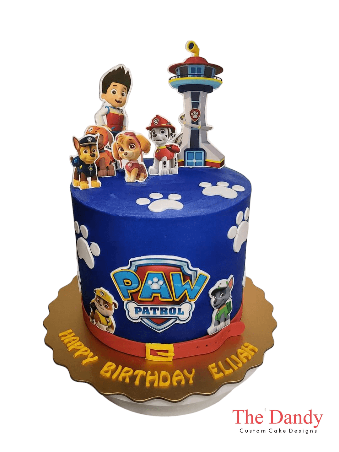Dive into the ultimate adventure with our paw patrol cake. This super cute paw patrol cake made by The Dandy Custom Cakes is decorated with edible printed charachters and handmade fondant paw prints.