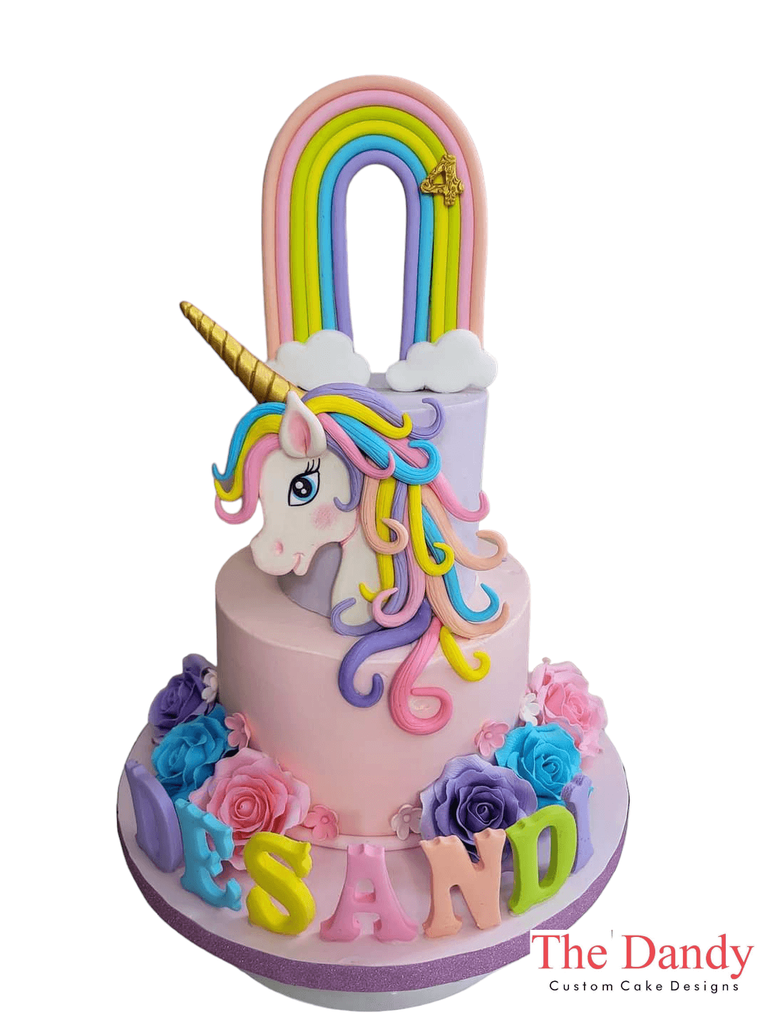 Celebrate your kids special occation with our gorgeous unicorn cake showcasing enchanting details on toppers like edible rainbow, beautiful fondant flowers, colorful unicorn horse and letters. Everything in this cake will be handmade and edible.